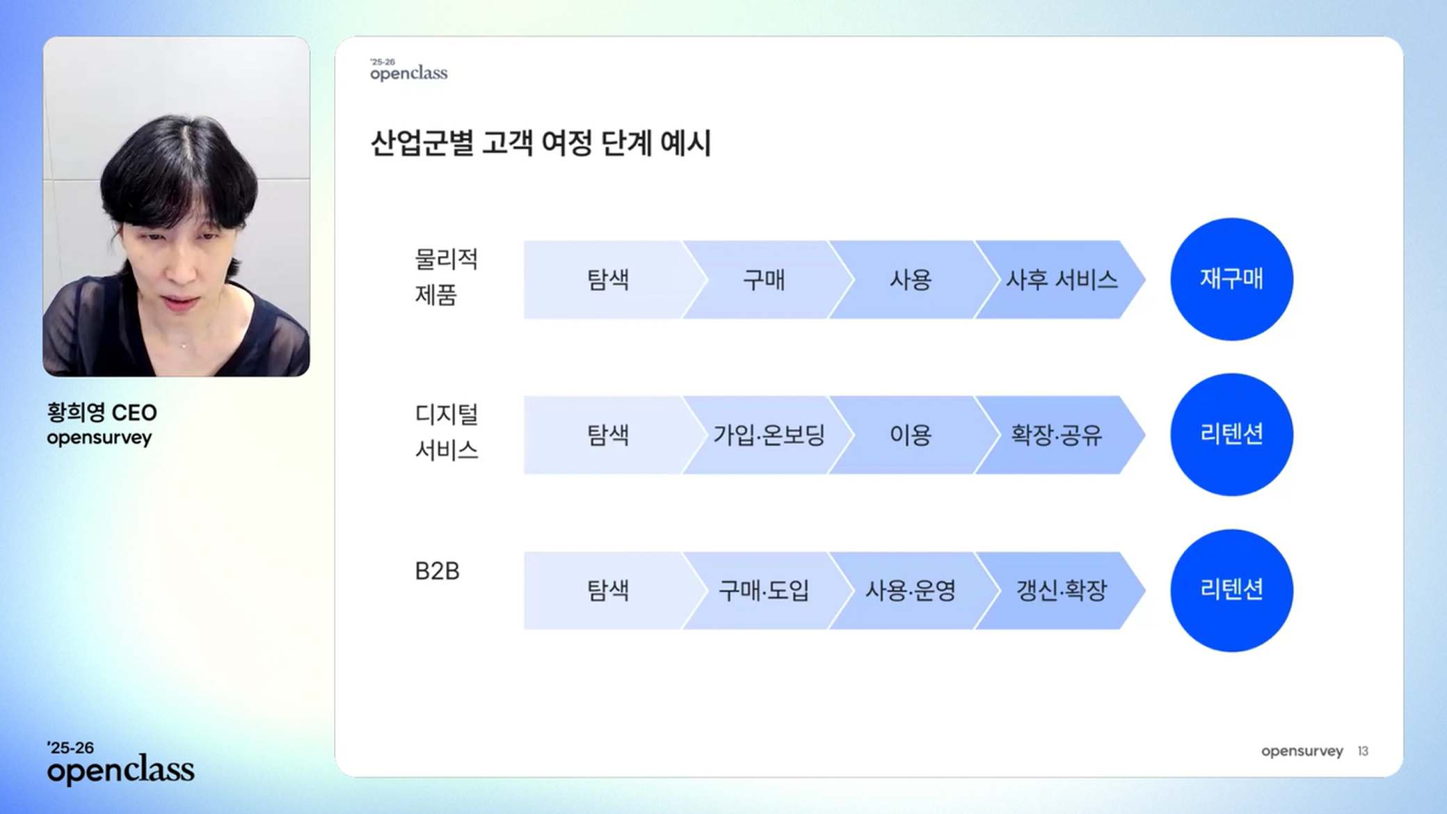 2025년 7월~11월 오픈서베이가 진행한 <데이터 기반 비즈니스 문제 해결>,<데이터 기반 고객 경험(CX) 개선>,<데이터 기반 브랜드 성과 관리> 오픈클래스를 살펴보세요.